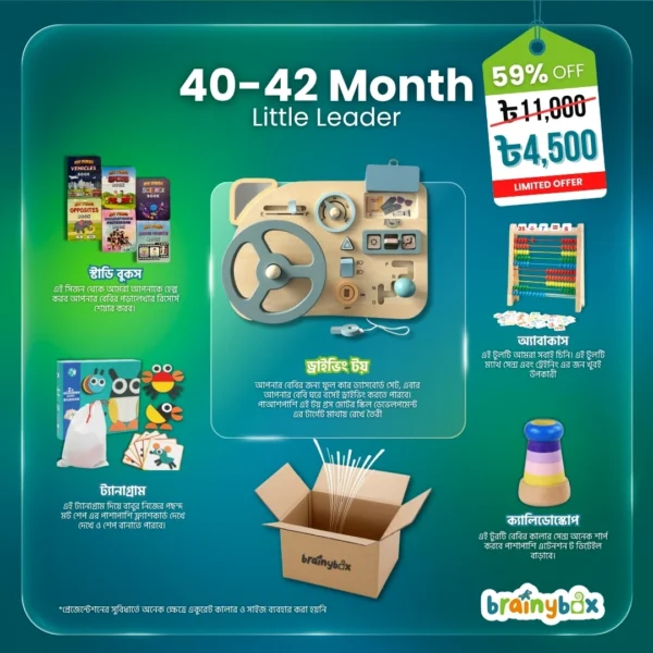 At this stage, children start understanding teamwork and self-expression. This package features cooperative board games, social storytelling activities, and leadership-inspired toys that build confidence, patience, and communication skills.
